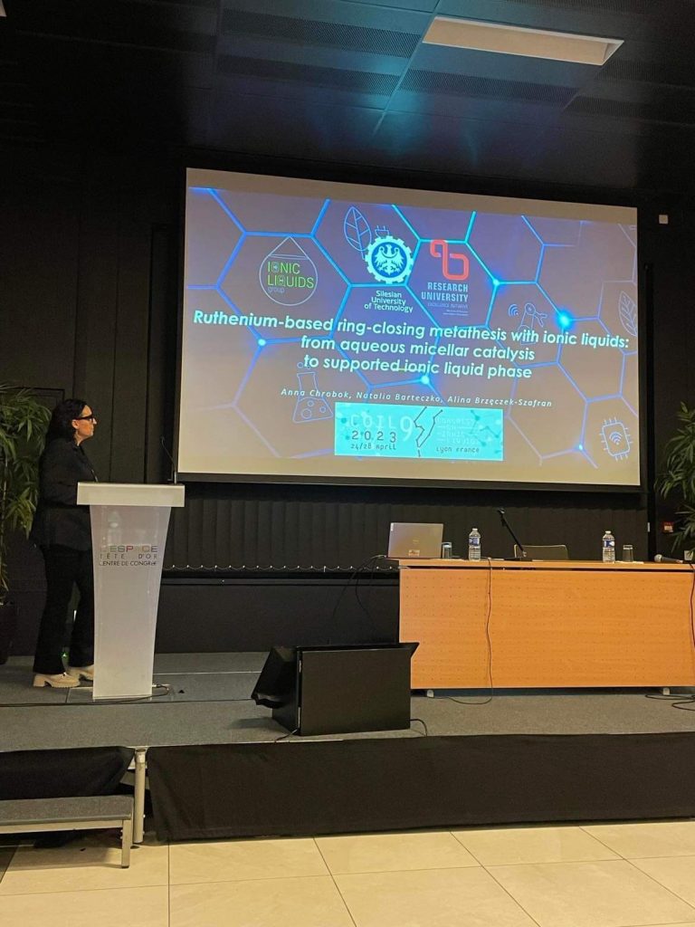 prof. Chrobok presented results on ionic liquids in effective ruthenium olefin metathesis while dr Brzeczek-Szafran gave a talk on sweet ionic liquids for sustainable functional materials.